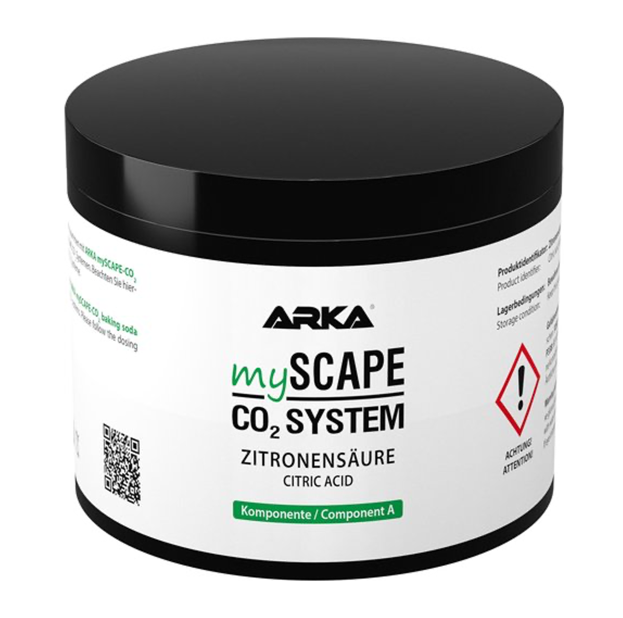 ARKA® mySCAPE-CO2 Zitronensäure (Komponente A) eignet sich zusammen mit ARKA® mySCAPE-CO2 Natron (Komponente B) optimal zur Verwendung mit den ARKA® mySCAPE-CO2 Systemen. Beachten Sie hierzu die Dosierungsanweisungen in der Anleitung der ARKA® mySCAPE-CO2 Systeme.