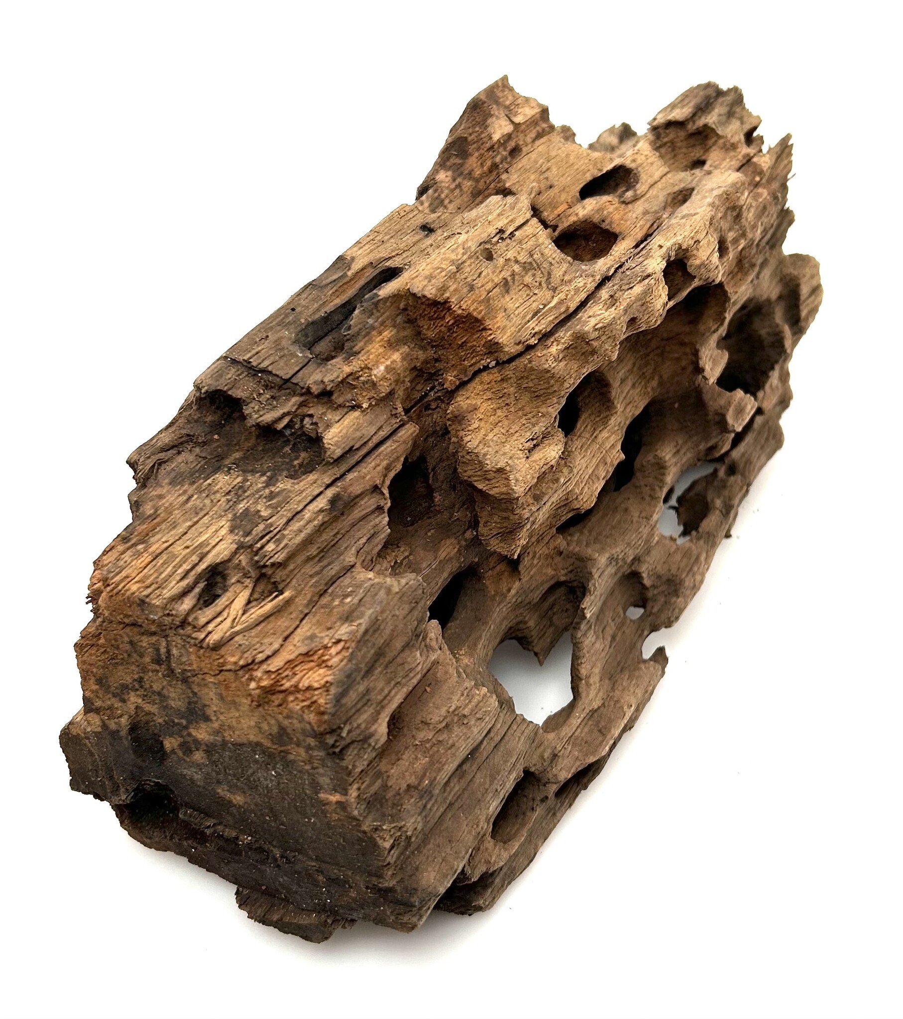 Drachenholz ist ein kompliziertes und einzigartiges Stück Treibholz, das jeder Aqualandschaft viel Charakter verleiht. Ähnlich wie Drachenstein ist Drachenholz eine natürlich vorkommende Hartlandschaft voller Löcher und Tunnel. Diese Höhlen sind perfekt für Garnelen sowie für Fische, die sich gerne verstecken, wie zum Beispiel Plecos. Dragon Wood gibt es in verschiedenen Farben, von Dunkelbraun über Hellbraun bis hin zu bräunlichem Grau. Diese Farben können sich im Laufe der Zeit durch Wassereinwirkung verändern.