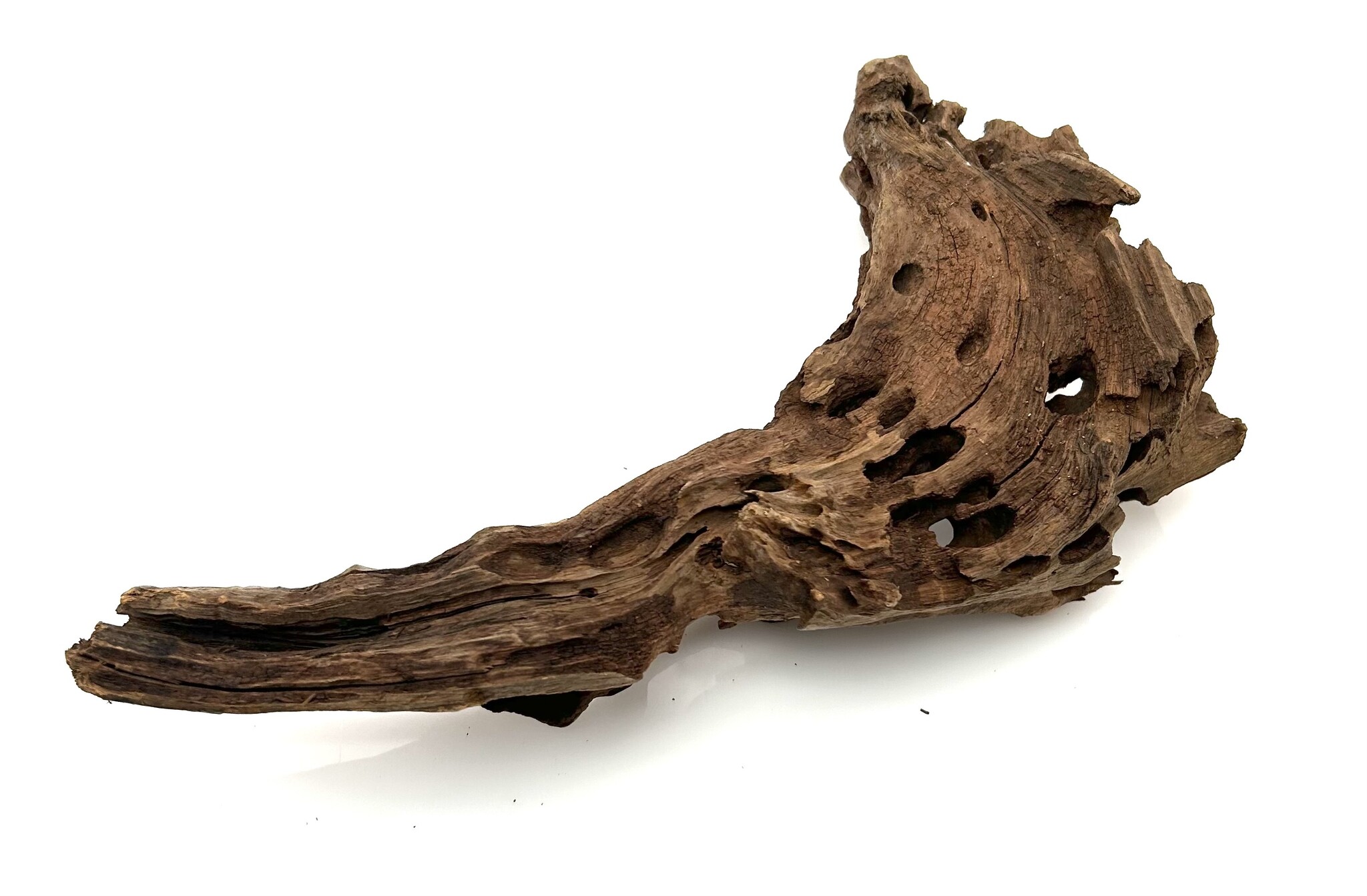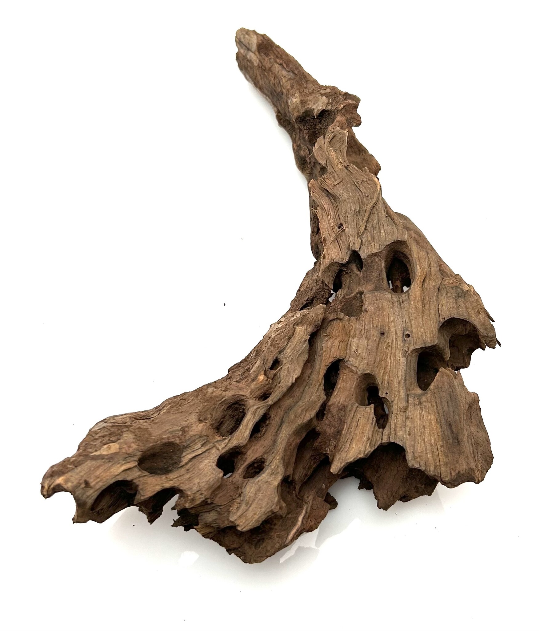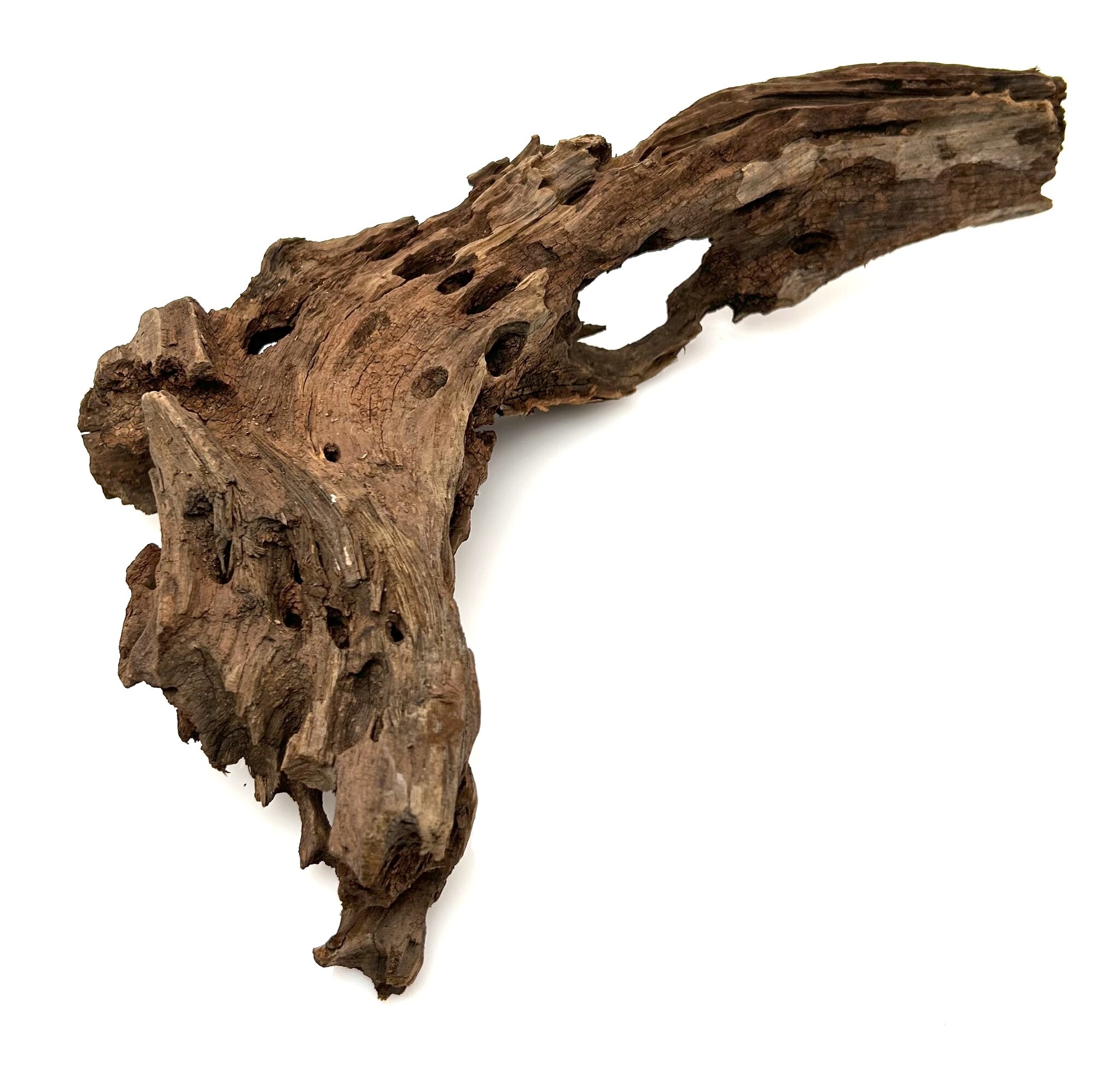 Drachenholz ist ein kompliziertes und einzigartiges Stück Treibholz, das jeder Aqualandschaft viel Charakter verleiht. Ähnlich wie Drachenstein ist Drachenholz eine natürlich vorkommende Hartlandschaft voller Löcher und Tunnel. Diese Höhlen sind perfekt für Garnelen sowie für Fische, die sich gerne verstecken, wie zum Beispiel Plecos. Dragon Wood gibt es in verschiedenen Farben, von Dunkelbraun über Hellbraun bis hin zu bräunlichem Grau. Diese Farben können sich im Laufe der Zeit durch Wassereinwirkung verändern.
