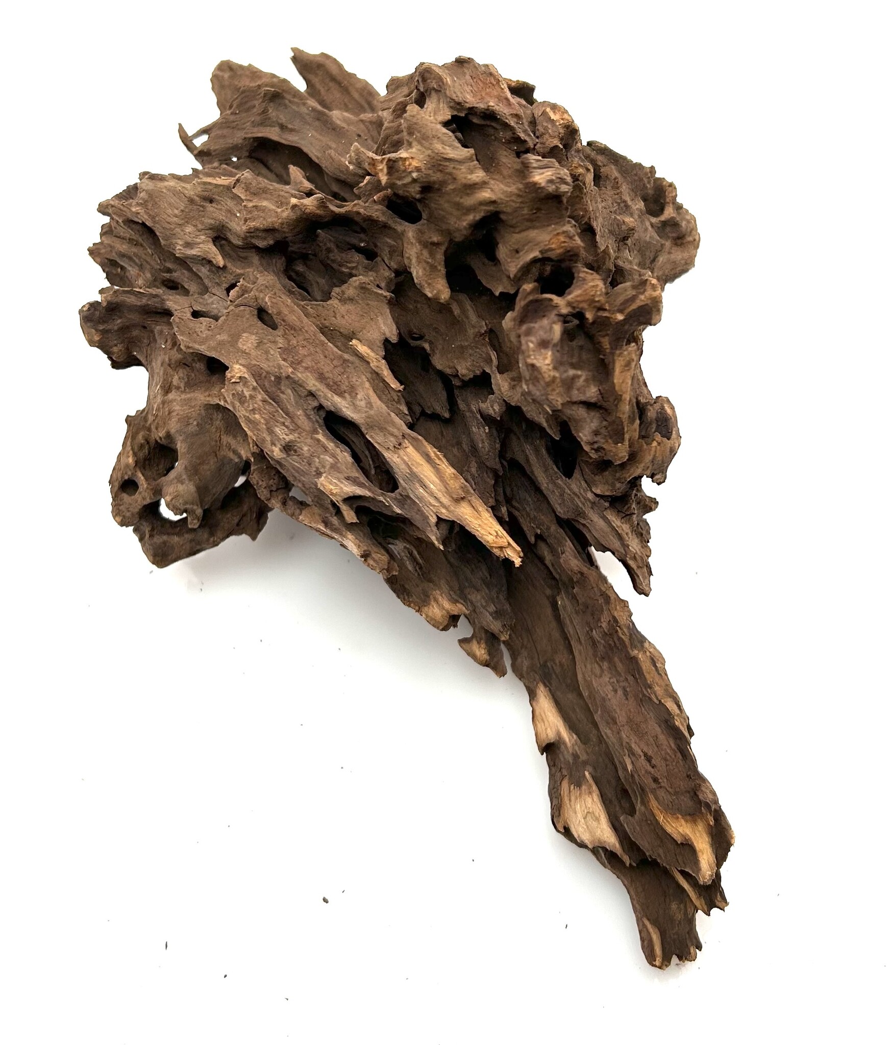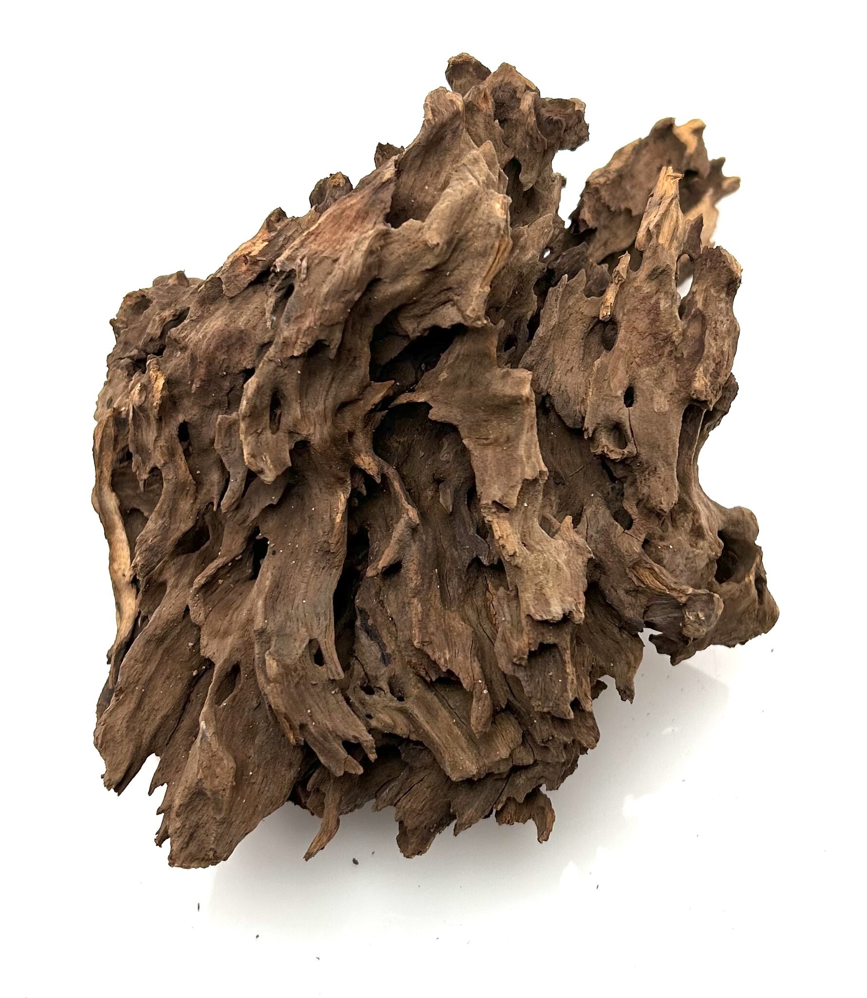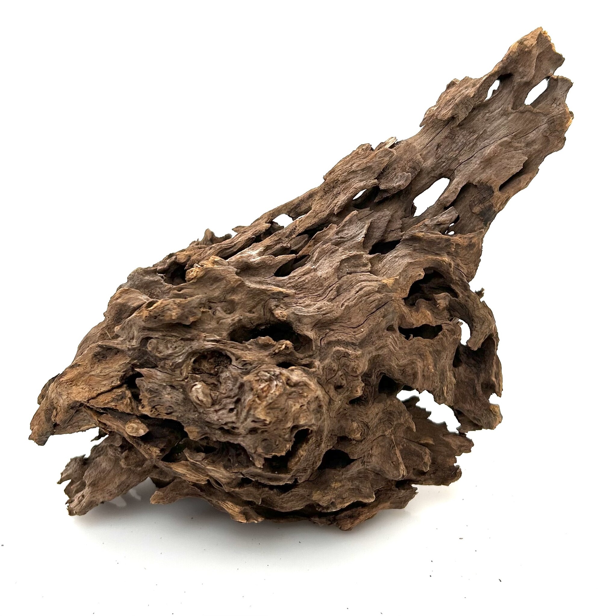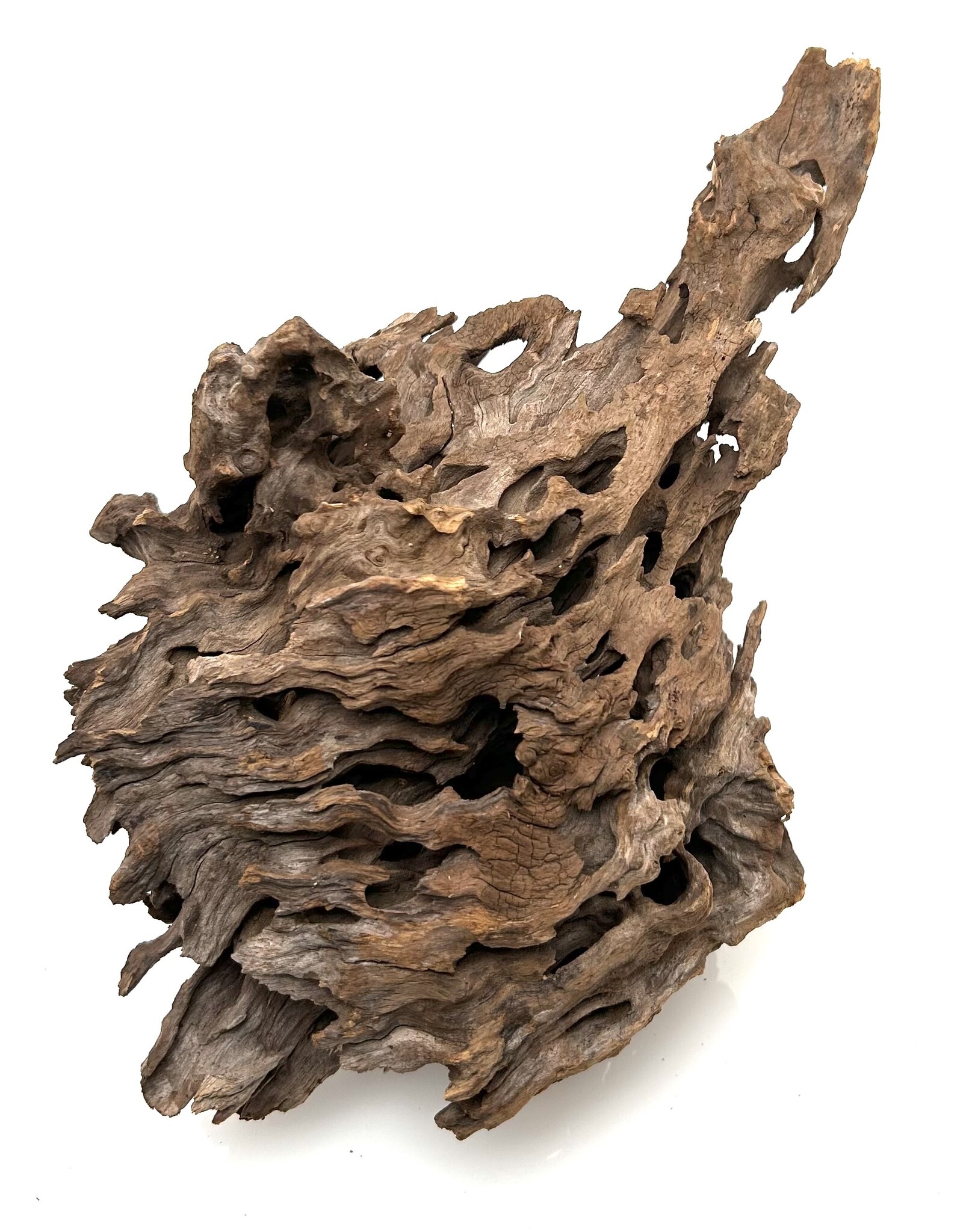 Drachenholz ist ein kompliziertes und einzigartiges Stück Treibholz, das jeder Aqualandschaft viel Charakter verleiht. Ähnlich wie Drachenstein ist Drachenholz eine natürlich vorkommende Hartlandschaft voller Löcher und Tunnel. Diese Höhlen sind perfekt für Garnelen sowie für Fische, die sich gerne verstecken, wie zum Beispiel Plecos. Dragon Wood gibt es in verschiedenen Farben, von Dunkelbraun über Hellbraun bis hin zu bräunlichem Grau. Diese Farben können sich im Laufe der Zeit durch Wassereinwirkung verändern.