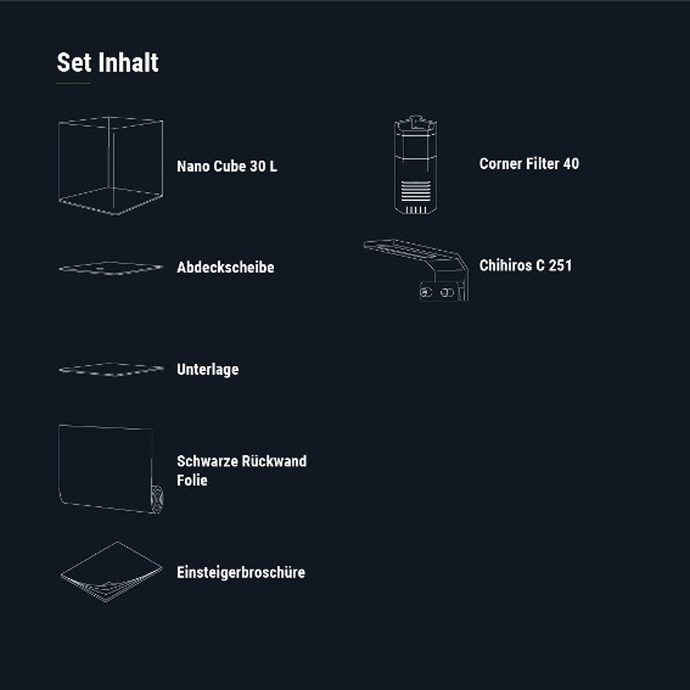 Modernes und kompaktes Design kombiniert mit Tradition und Qualität. Das vereinen die Dennerle Aquarien mit den Nano Cubes und Nano Tanks. Das kompakte Design ermöglicht auch auf kleinem Raum, ein Stück Natur im eigenen Zuhause zu erleben. Ein optisches Highlight für jeden Raum – das liegt nicht zuletzt an den abgerundeten Ecken, die einen Panoramablick auf das Aquarium ermöglichen. Die Basic Serie ist unser Technik-Set mit Filter und Beleuchtung. Das ist der einfache Einstieg mit freier Bodengrundwahl, egal ob heller Sand oder tiefschwarzer Kies bevorzugt werden. Im Vergleich zu herkömmlichen Aquariensets setzen wir von Anfang an auf gute Technik. Mit gutem Licht und ausreichend Filterung sind so auch gut bepflanzte Aquarien kein Problem!